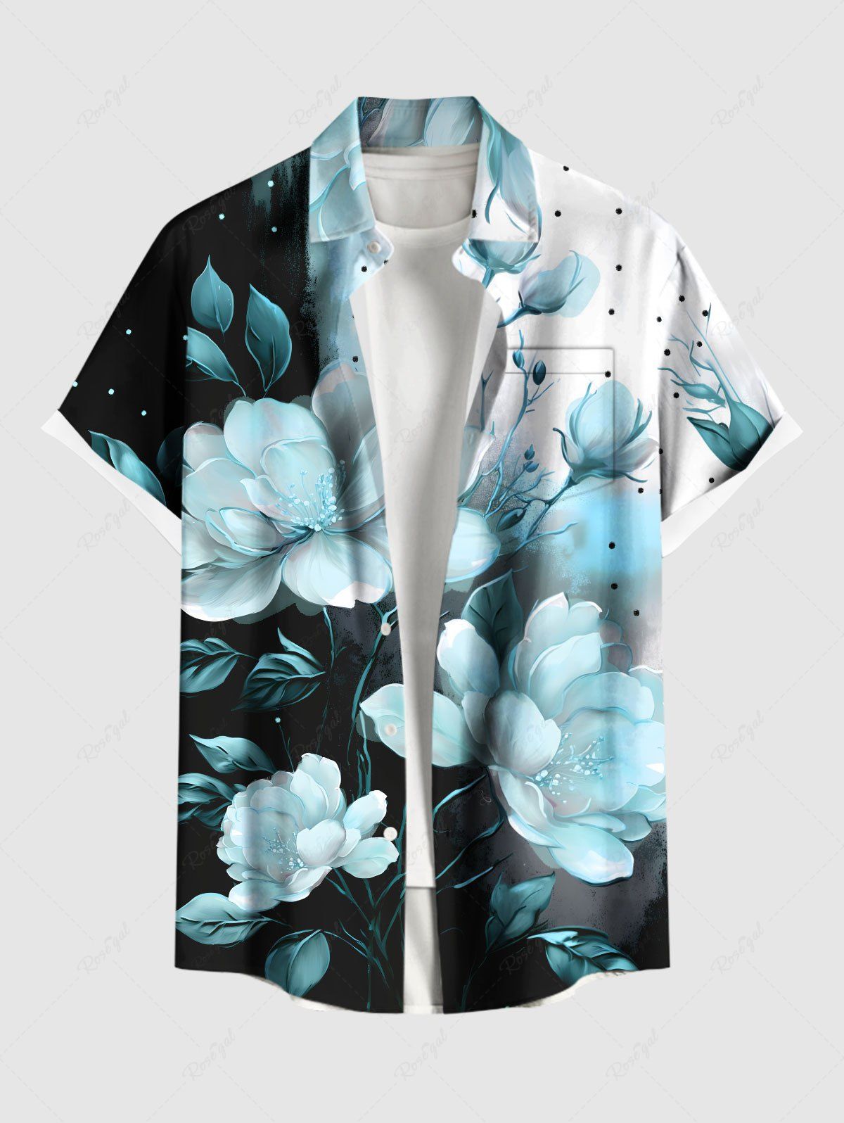 Plus Size Flowers Leaf Ombre Colorblock Print Buttons Pocket Hawaii Shirt For Men - 2xl