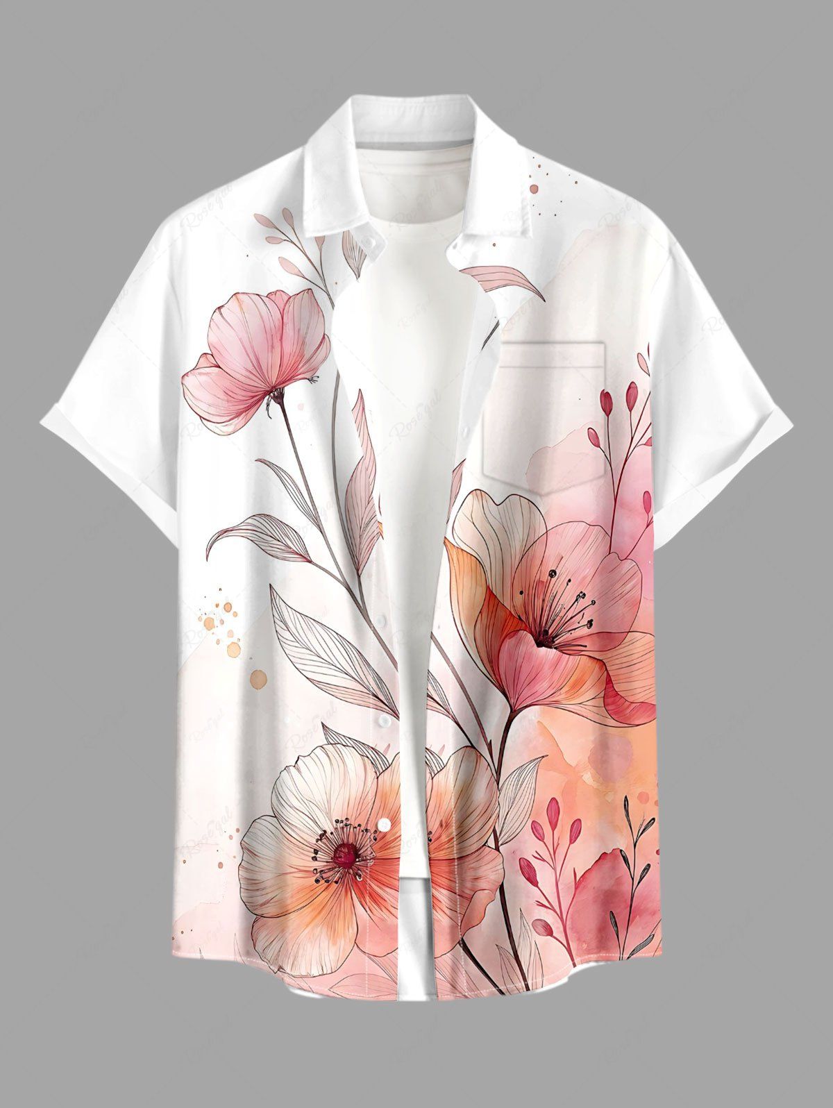 Plus Size Flowers Leaf Ombre Print Buttons Pocket Hawaii Shirt For Men - S