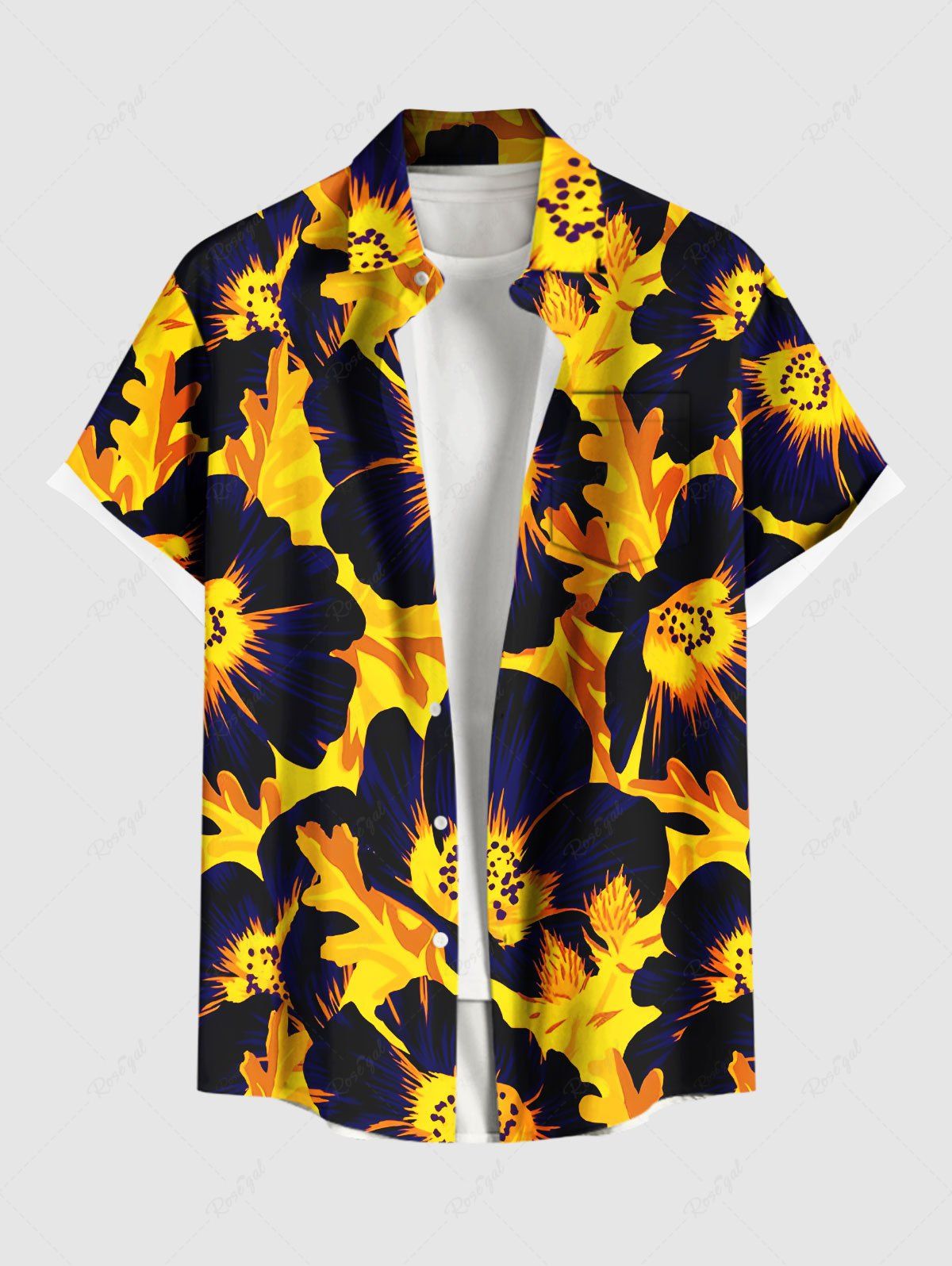 Plus Size Flowers Leaf Print Buttons Pocket Hawaii Shirt For Men - 6xl
