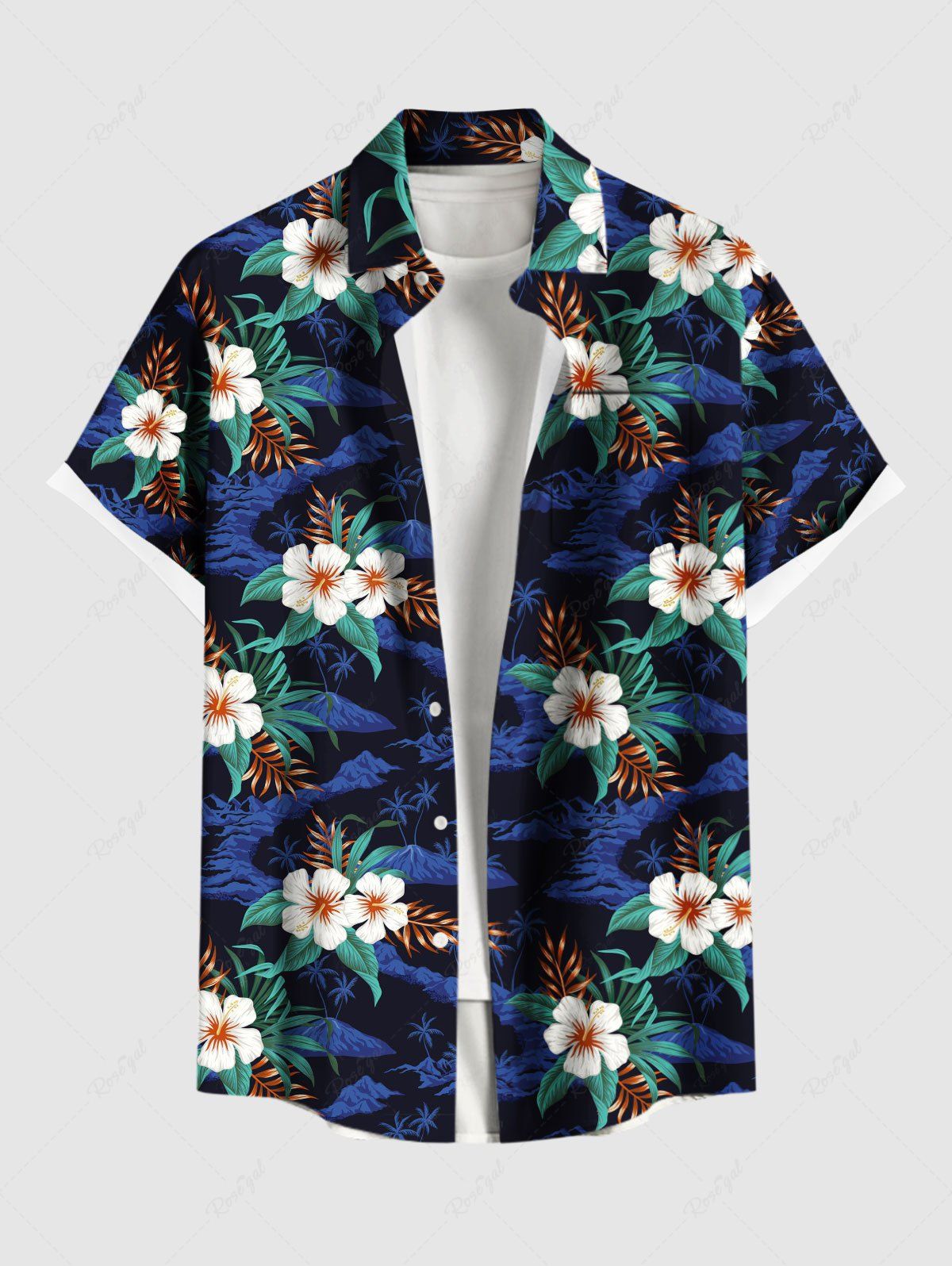 Plus Size Hibiscus Flowers Leaf Print Buttons Pocket Hawaii Shirt For Men - 3xl