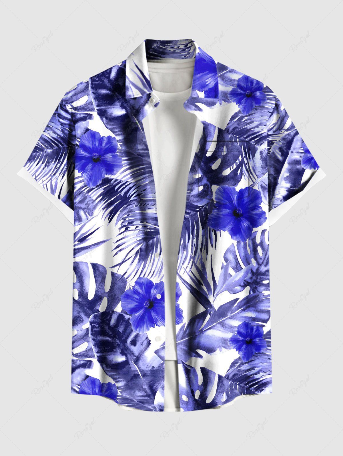 Plus Size Hibiscus Flowers Tropical Leaf Print Buttons Pocket Hawaii Shirt For Men - 6xl