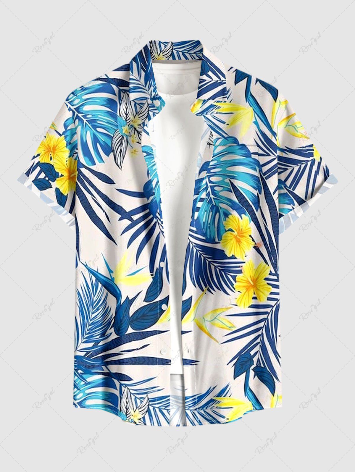 Plus Size Hibiscus Flowers Tropical Leaf Print Buttons Pocket Hawaii Shirt For Men - 2xl
