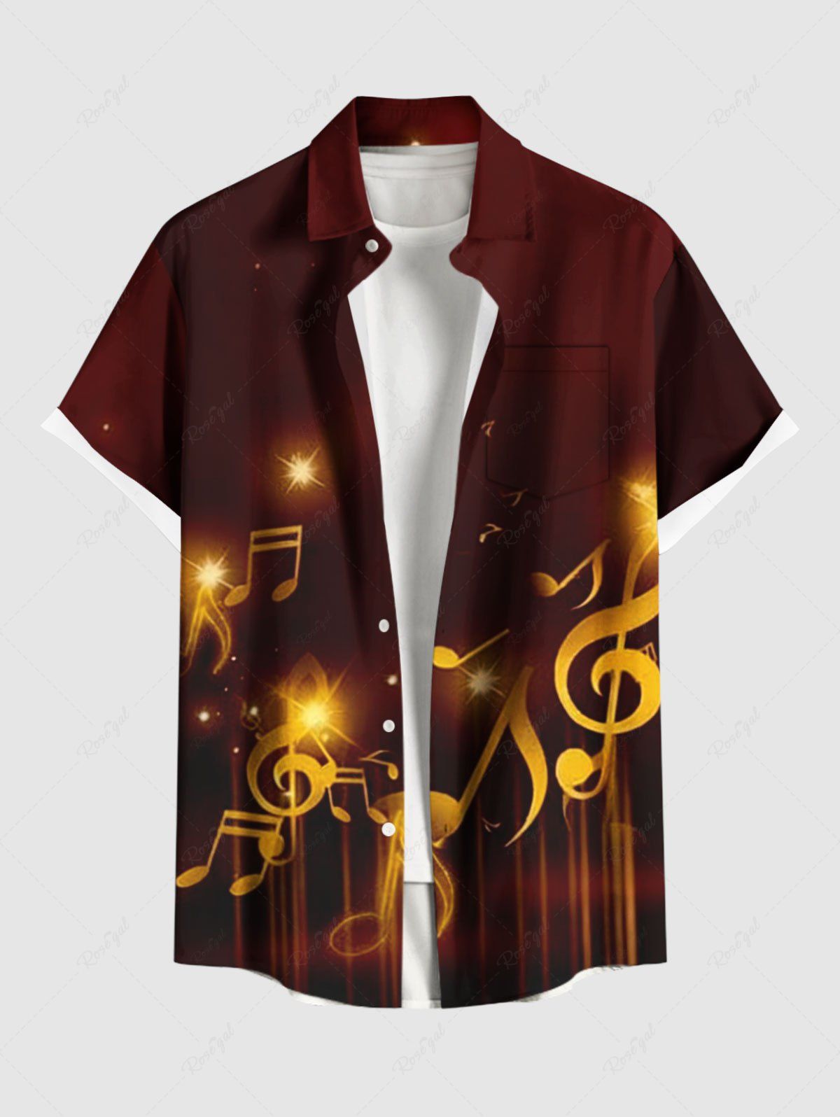 Plus Size Music Symbol Glitter Stars Print Button Pocket Shirt For Men - Xl