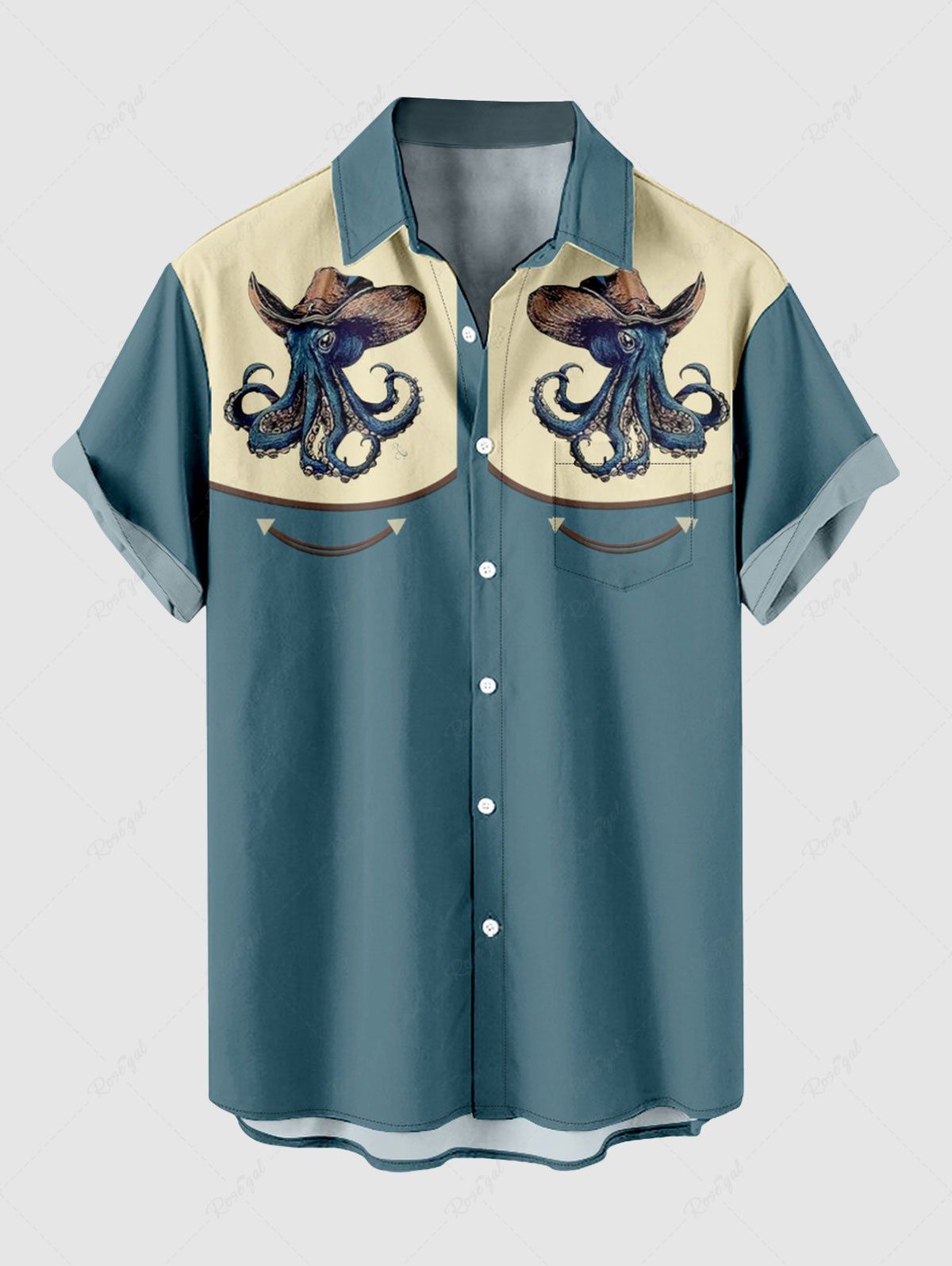 Plus Size Octopus Hat Colorblock Print Buttons Pocket Hawaii Shirt For Men - 6xl