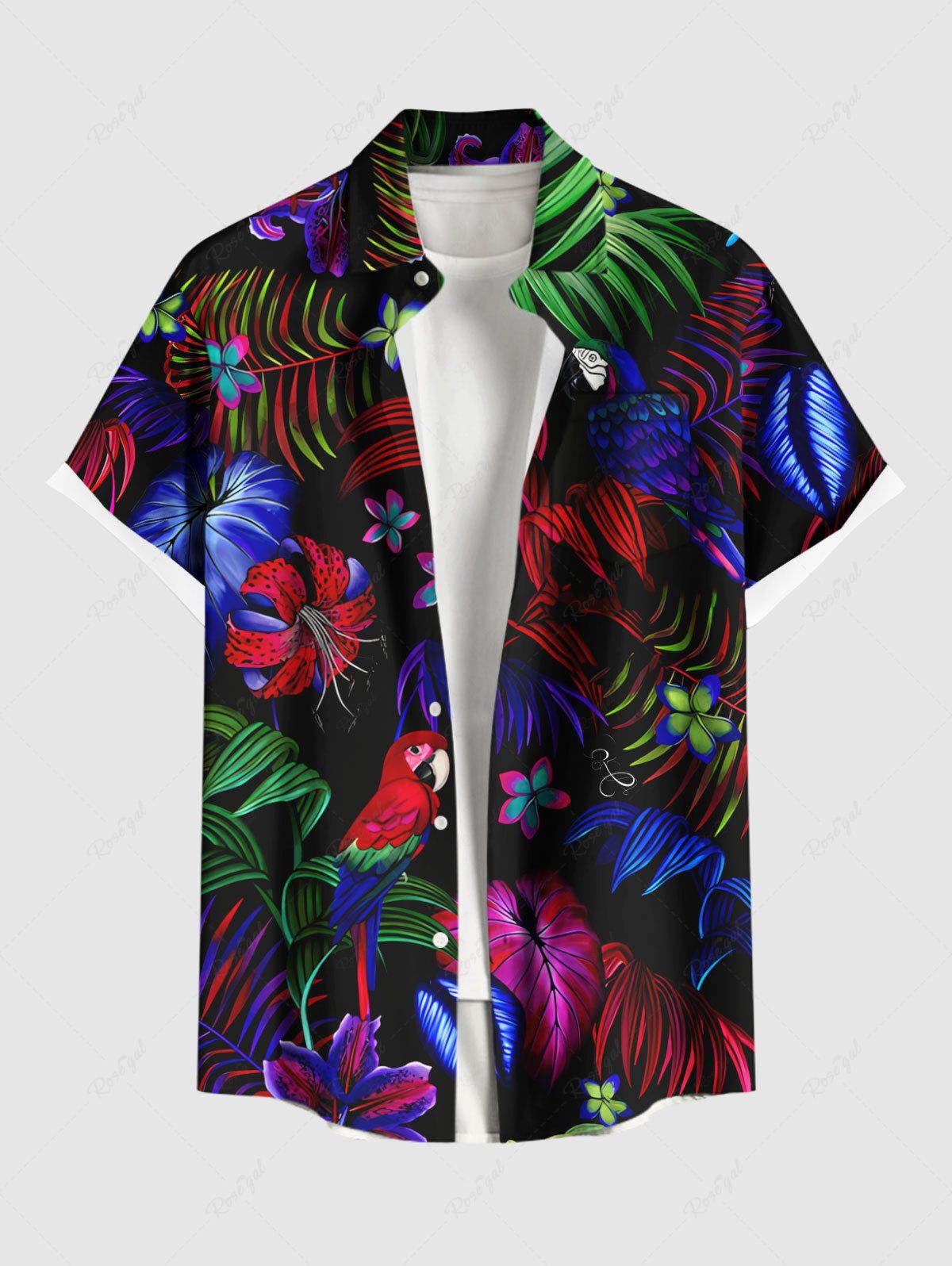 Plus Size Ombre Tropical Leaf Hibiscus Flower Parrot Print Hawaii Button Pocket Shirt For Men - M
