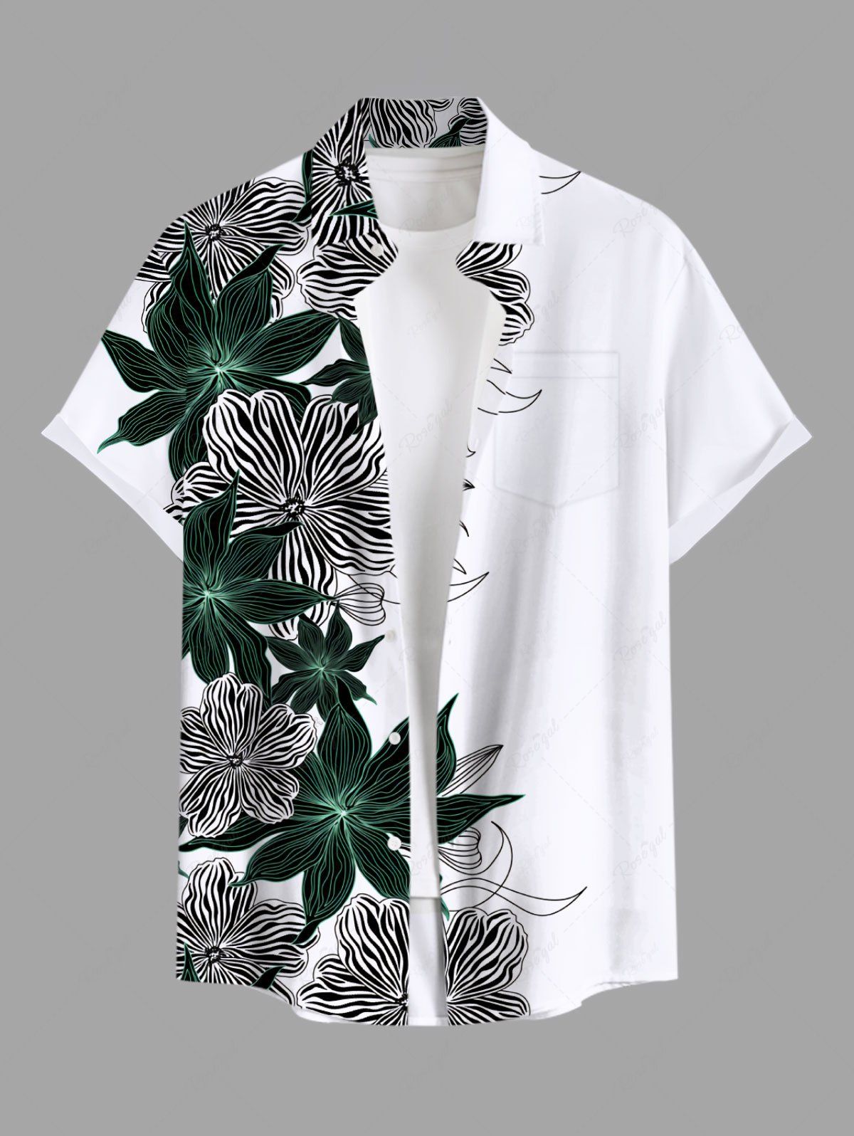 Plus Size Striped Floral Print Hawaii Button Pocket Shirt For Men - L