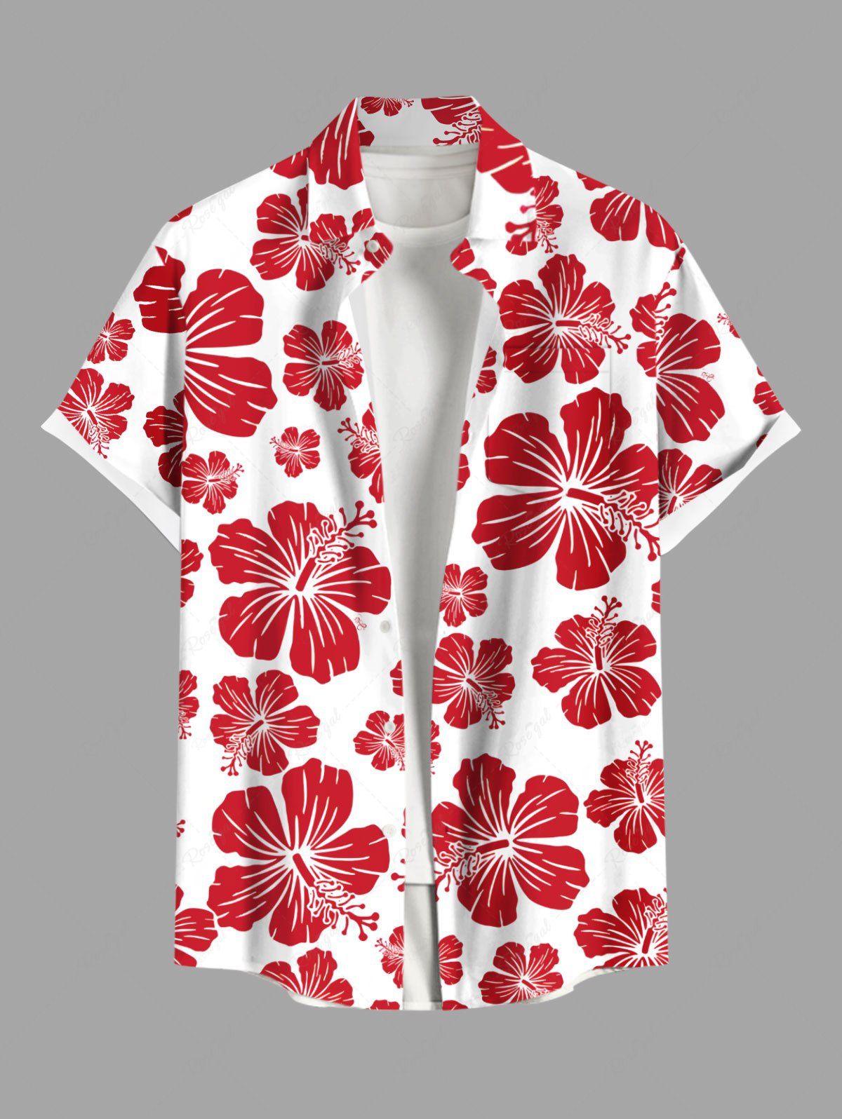 Plus Size Tropical Hibiscus Flower Print Buttons Pocket Hawaii Shirt For Men - 6xl