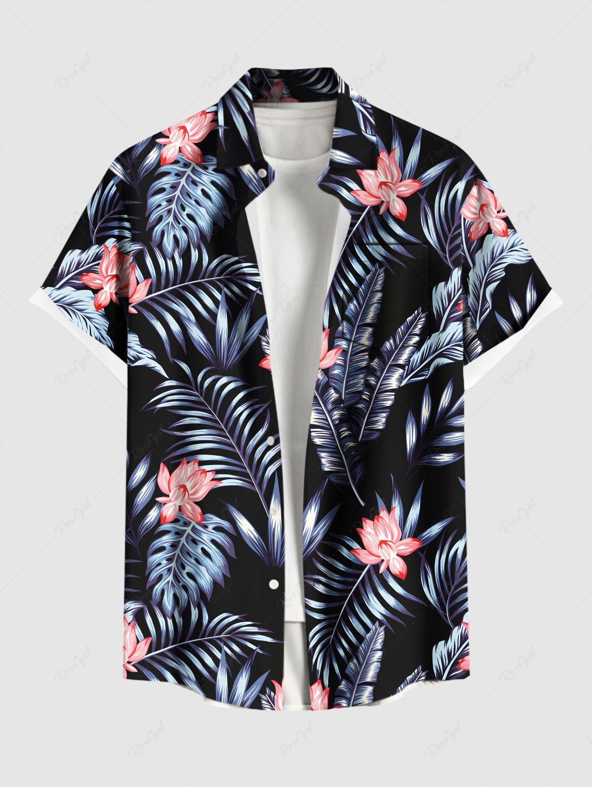 Plus Size Tropical Leaf Hibiscus Flowers Print Buttons Pocket Hawaii Shirt For Men - 6xl