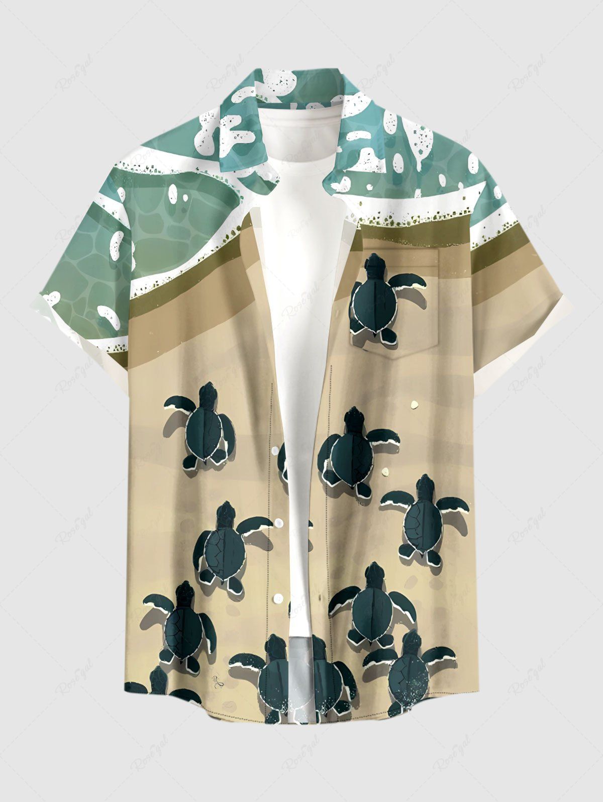 Plus Size Turtle Sea Print Hawaii Sea Creatures Button Pocket Shirt For Men - L