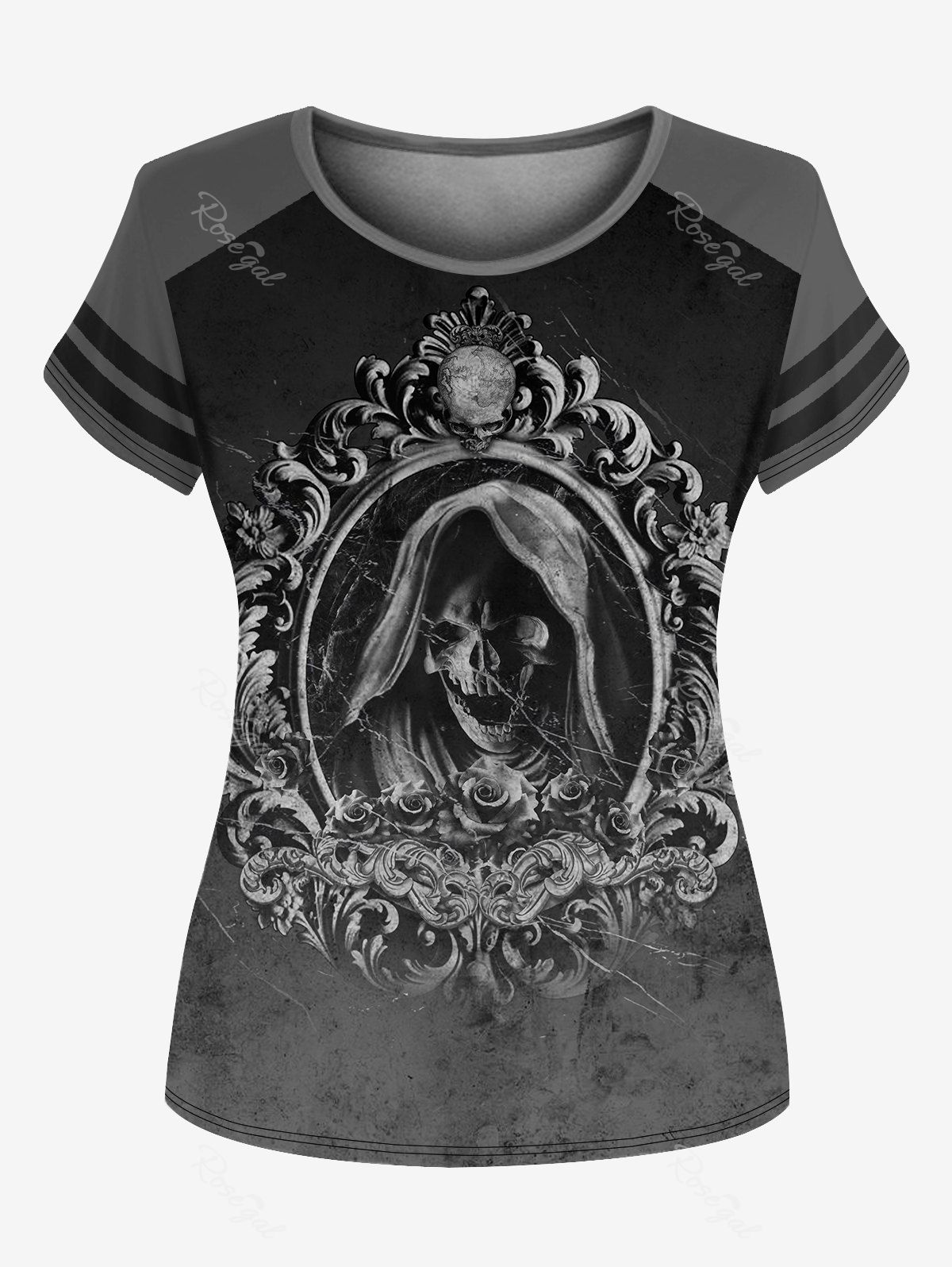Plus Size Skull Printed Short Sleeves Gothic Tee