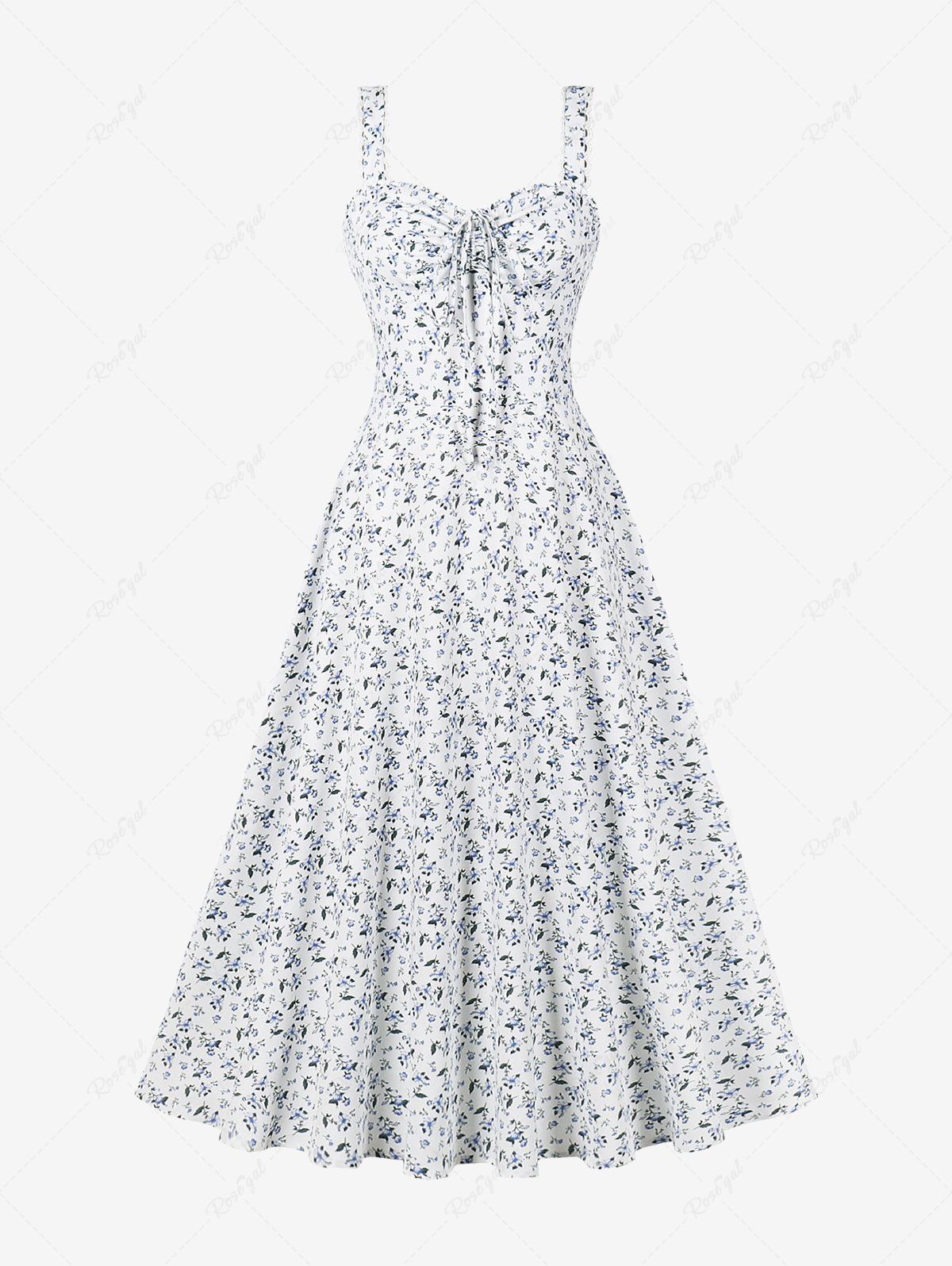 Flowers Leaf Print Tulip Hem Layered Bowknot Panel Tank Vintage Dress