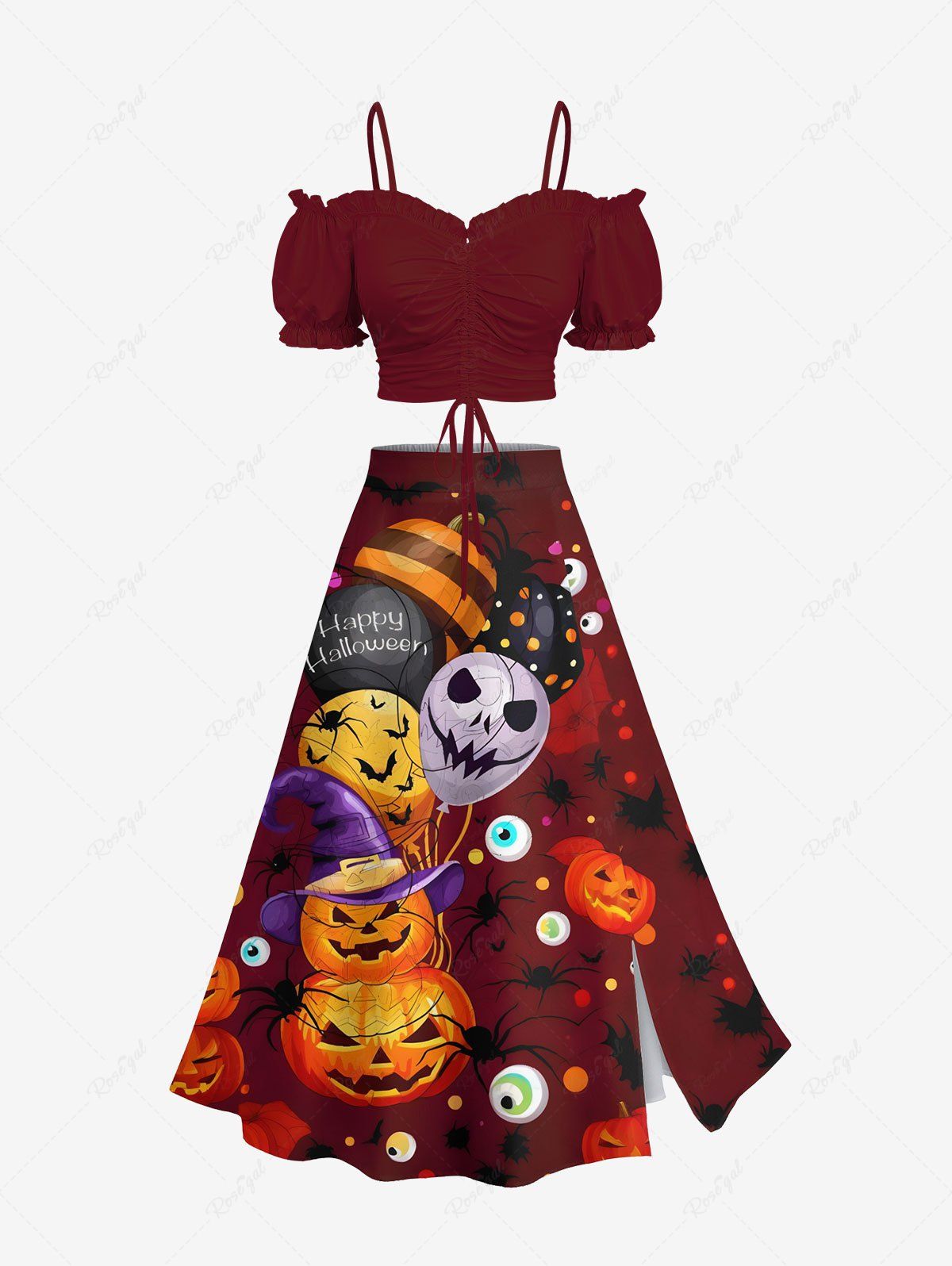 Halloween Pumpkin Skull Balloon Eyes Bat Print Plus Size Matching Set